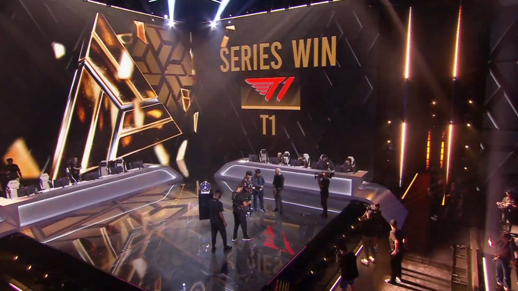 결정적인 순간은 30분경 드래곤 앞 한 타였죠. T1은 구마유시(Gumayusi)의 활약으로 BLG 4명을 잡아 대승을 거뒀고 바론까지 획득하며 38분 만에 첫 세트를 따냈습니다. 구마유시 캐리.